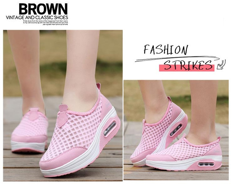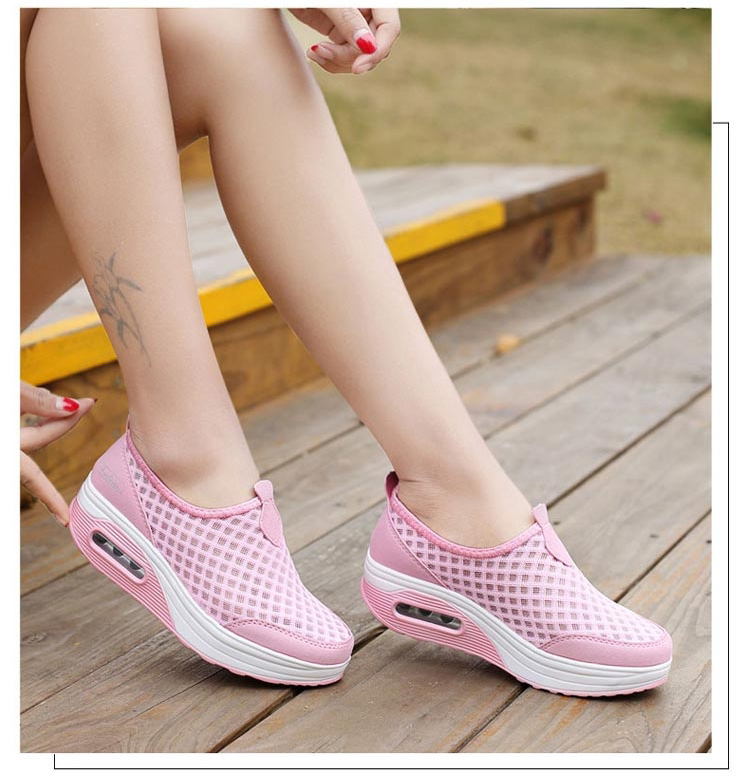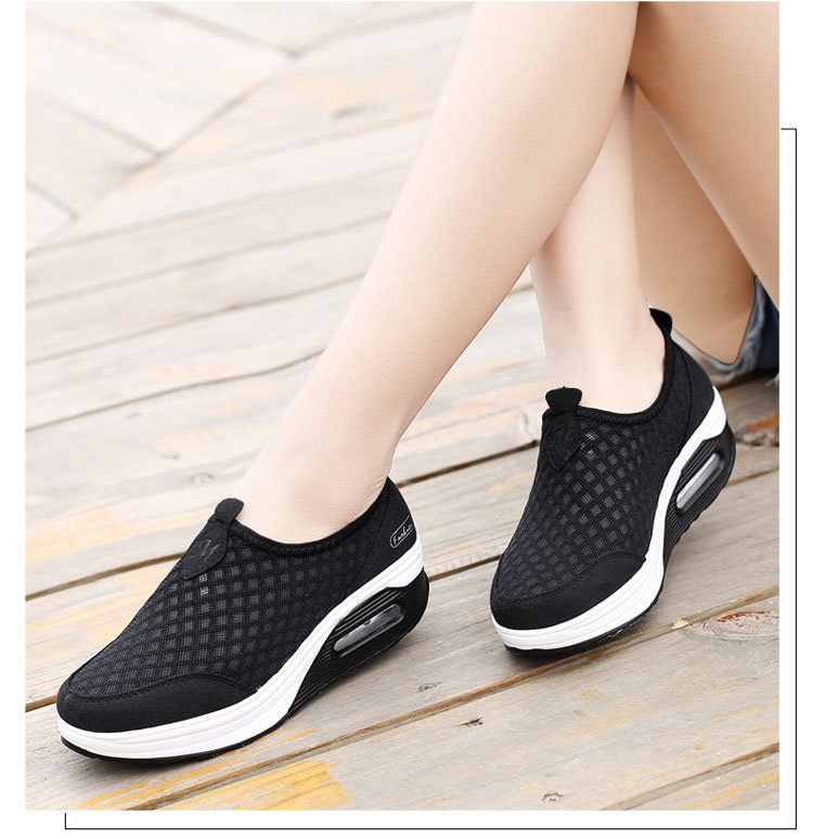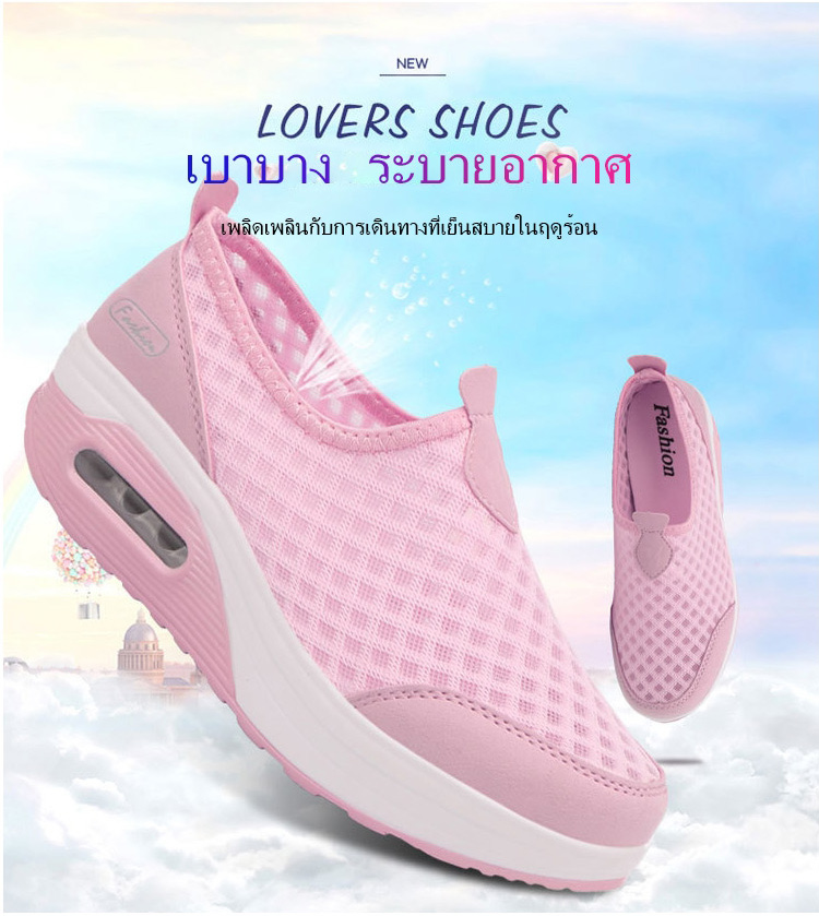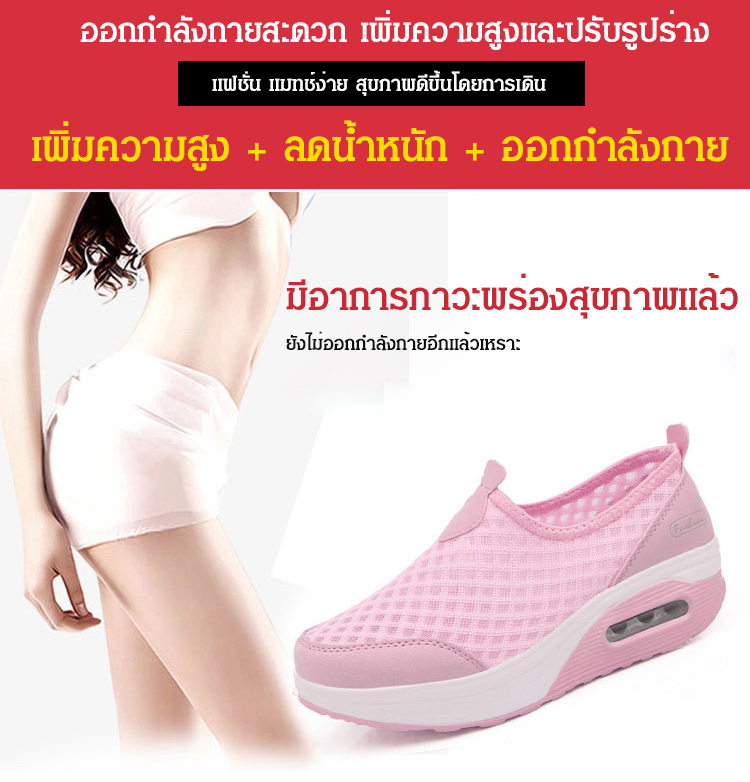 รองเท้าเสริมส้นผ้าตาข่ายระบายอากาศ